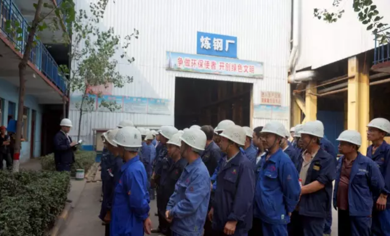 煉鋼車間的班前工作例會。