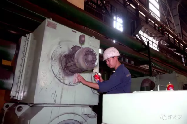 高線車間工人在檢修清潔電動機。